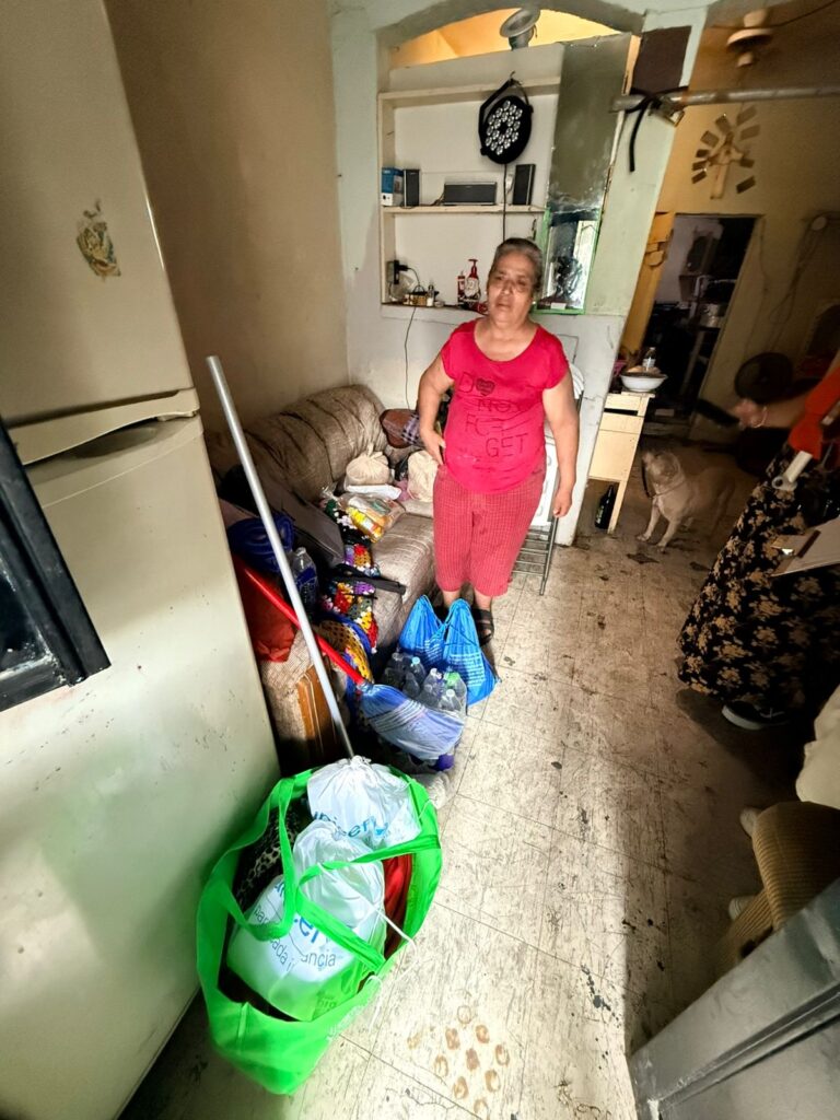 En la vivienda afectada de Santa Catarina se entregaron kits de limpieza, agua y kits alimenticios.