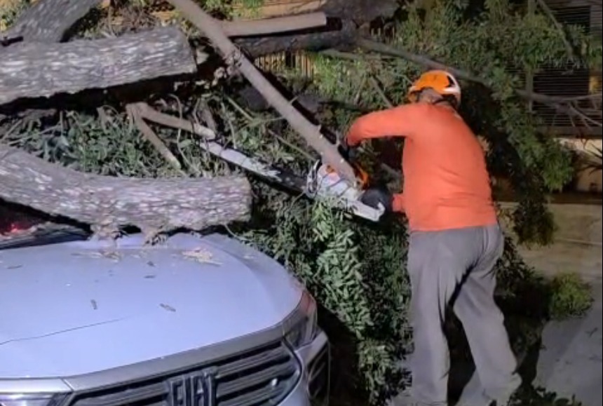 Durante la madrugada fueron atendidas más de 60 llamadas de auxilio, la mayoría relacionadas con árboles caídos, cables tirados en la vía pública y anuncios dañados o destruidos debido a las fuertes ráfagas de viento.