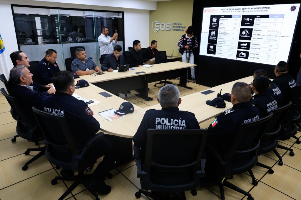 Durante la reunión, el secretario de Seguridad, Alfredo Fabela Pacheco, presentó el estado de fuerza y las capacidades operativas del municipio, con énfasis en las áreas de inteligencia, análisis e investigación criminal y la dirección del C4, responsables de identificar patrones, riesgos y posibles infiltraciones relacionadas con actividades de alto impacto.