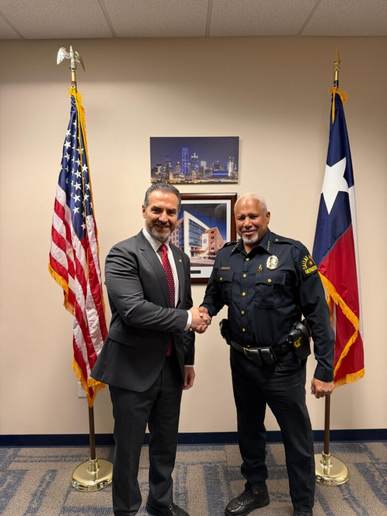 Monterrey, Nuevo León, 6 de noviembre.- Para conocer las tareas de vigilancia policial urbana y seguridad comunitaria, el alcalde Adrián de la Garza sostuvo una reunión privada con Daniel C. Comeaux, jefe del Departamento de Policía de Dallas.