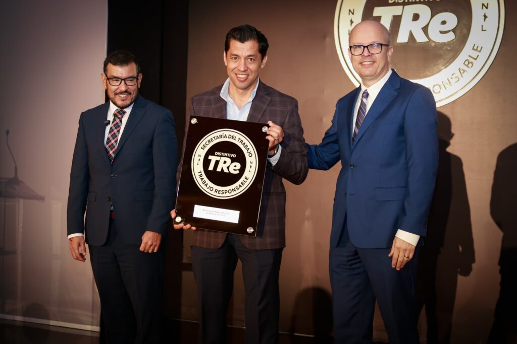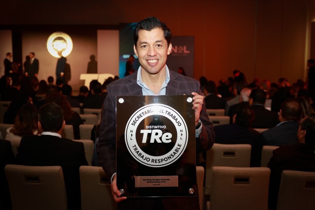 Monterrey, Nuevo León, 9 de diciembre.- Servicios de Agua y Drenaje de Monterrey fue distinguido con el Distintivo TRe: Trabajo Responsable, que otorga la Secretaría del Trabajo de Nuevo León, a las organizaciones del estado que generan bienestar, productividad, desarrollo e impulsan la cultura de la prevención y mitigación de riesgos.