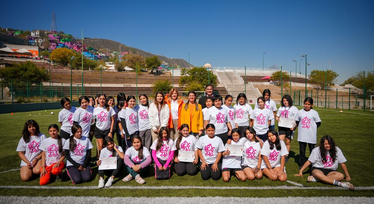 Monterrey, Nuevo León, 18 de marzo.- La Secretaria de Igualdad e Inclusión, Martha Herrera, encabezó las actividades de “Chavas en la Cancha 2026”, Clínicas de Futbol para el Liderazgo e Inclusión, en el que participaron mujeres adolescentes de 12 a 17 años de Centros Comunitarios de Nuevo León.