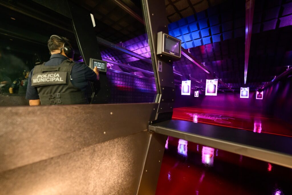 La instalación se integra a un ecosistema completo de formación que incluye el simulador virtual de tiro y escenarios tácticos, donde los elementos entrenan la toma de decisiones, el control del estrés y una actuación responsable antes de pasar a prácticas de fuego real.