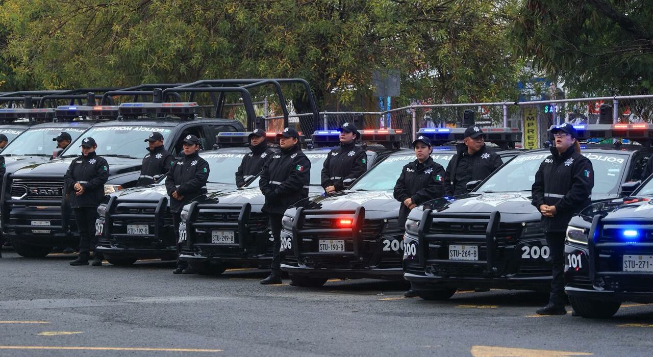 En este dispositivo conjunto con autoridades estatales y federales, participan oficiales de Policía, Tránsito, Guardia Auxiliar, Cadetes, Protección Civil, Cruz Roja y Bomberos Nuevo León.