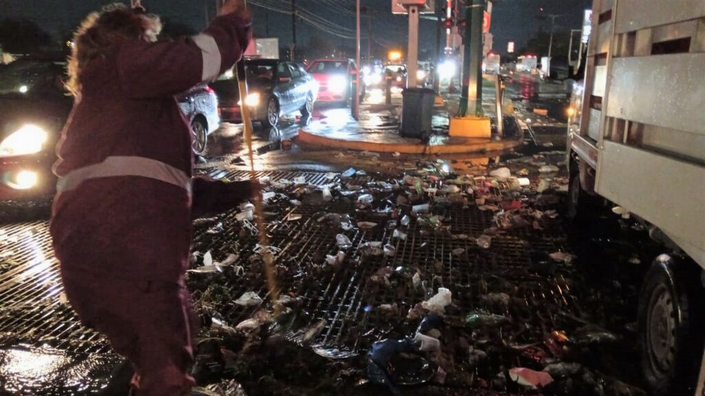 De manera continua, la Secretaría de Servicios Públicos mantiene trabajos de limpieza y desazolve en arroyos, canalones y alcantarillas, retirando desechos como basura, ramas, lodo y otros objetos que puedan obstruir el paso del agua.