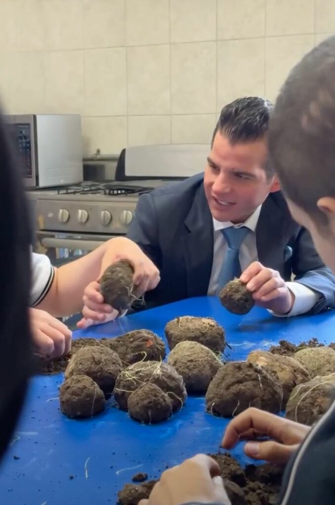 Las esferas son hechas bajo una técnica japonesa llamada “nendo dango” y contienen tierra, composta y semillas.