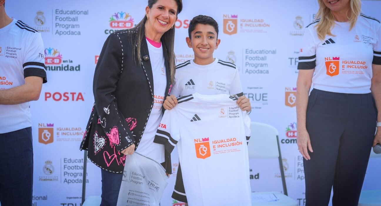 Martha Herrera estuvo acompañada por Elizandra Bonatto, directora general de True Sports, socio oficial de la Fundación Real Madrid Clinics en algunos territorios de México; José Ángel Vargas, CEO de Fundación Posta, e integrantes de HEB en la Comunidad, quienes entregaron los uniformes que portarán los jugadores que conforman el grupo oficial de los Centros Comunitarios.