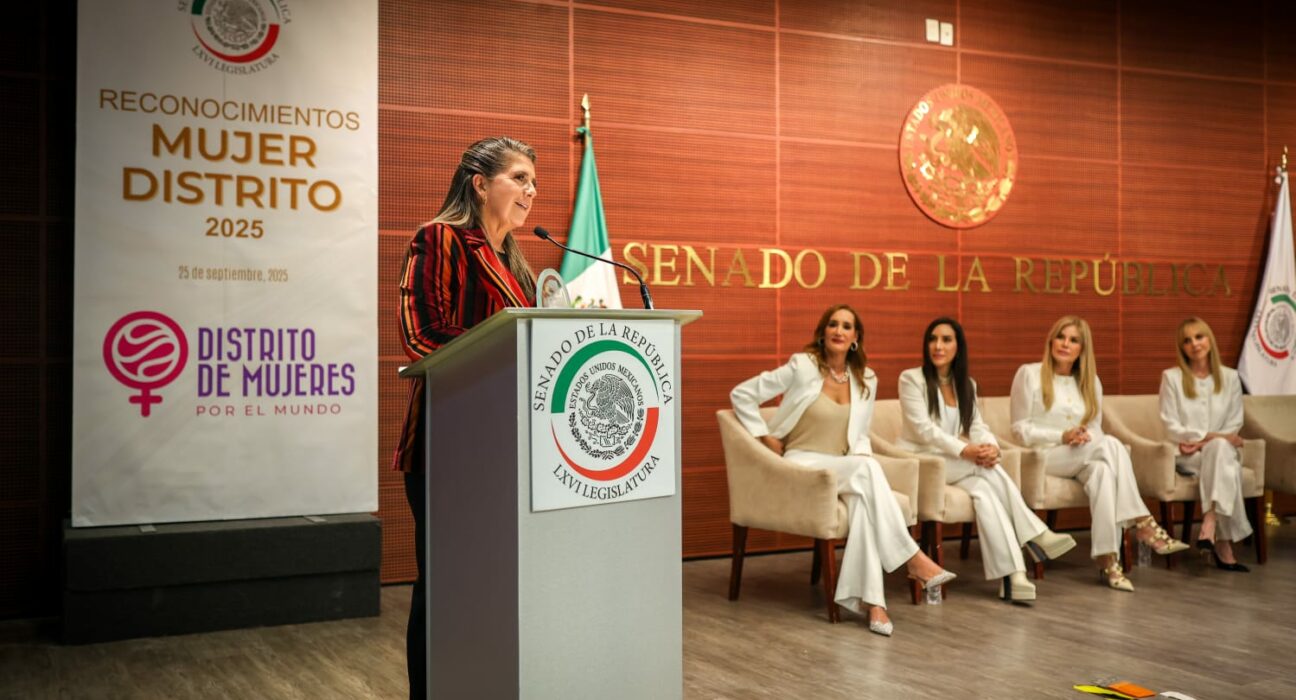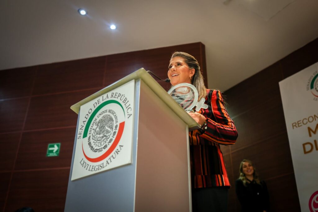 En su mensaje, durante la ceremonia de entrega por parte de la asociación Distrito de Mujeres por el Mundo que se realizó en el Senado de la República, destacó que entre sus compromisos se encuentran crear espacios para más mujeres, cerrar brechas de desigualdad y tejer alianzas que suman y multiplican.