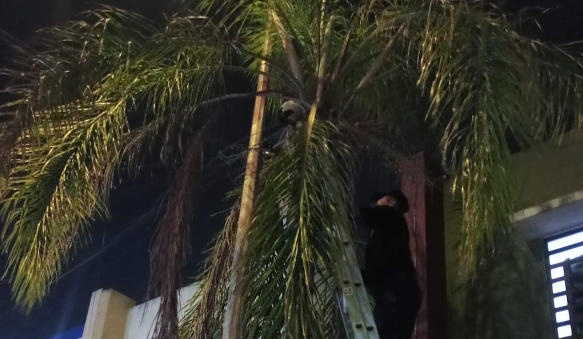 Escobedo, Nuevo León, 23 de enero.- Proxpol volvió a demostrar que su vocación va más allá del uniforme al convertirse en los ángeles de un inquieto gato que quedó varado en lo alto de una palma de gran altura.
