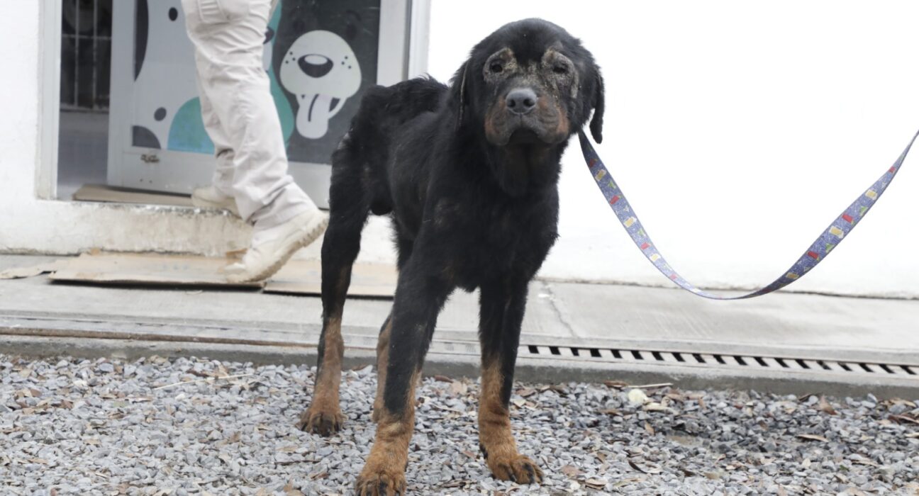 Cuando trasladaban a “Silvia” para su resguardo, en Protección Animal recibieron el reporte de un perro de la raza Rottweiler que se encontraba en abandono y en malas condiciones de salud y desnutrición, en la Colonia San Marcos del Parque.