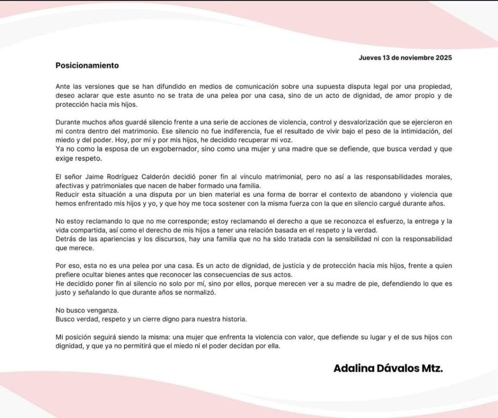 ADALINA DÁVALOS ROMPE EL SILENCIO