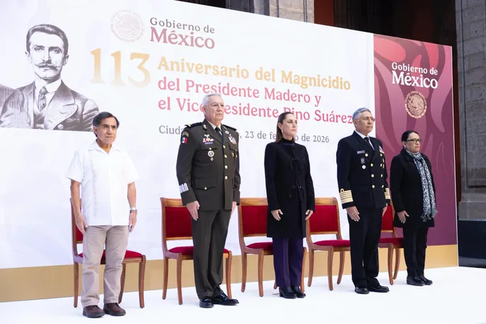 El alcalde de Monterrey remató con un reconocimiento a la Presidenta Claudia Sheinbaum, quien está al frente de la Estrategia Nacional de Seguridad y justo en la víspera del Día de la Bandera que hoy se conmemora. Por eso también entregó 30 banderas en igual número de escuelas de la ciudad.