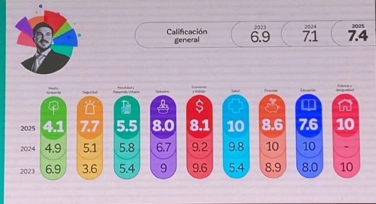 La verdad es que llama la atención que Medio Ambiente esté cayendo de manera tan acelerada, porque en el 2023 obtuvo 6.9 en la evaluación, el año pasado se cayó hasta 4.9, pero este 2025 llegó al 4.1, lo que evidencia que la llegada de Lozano solo sirvió para acabar de enterrar a la dependencia. Habla muy bonito, pero por lo visto, técnicamente no ha dado resultados.