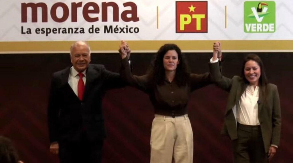 El encuentro entre la dirigente nacional de Morena, Luisa María Alcalde con sus homólogos del Verde, Karen Castrejón Trujillo, así como del Partido del Trabajo, Alberto Anaya Gutiérrez, derivó en un comunicado conjunto en el que refrendan su compromiso de ir unidos en los procesos electorales de 2027.
