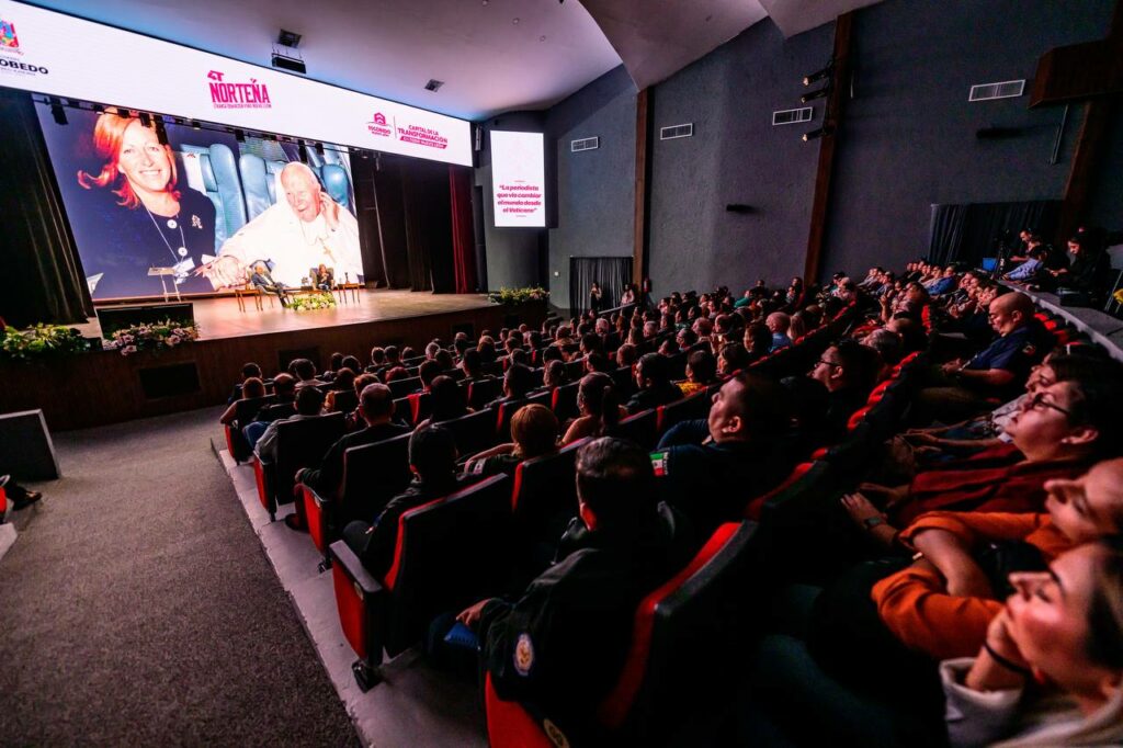 Escobedo, Nuevo León, 31 de octubre.- La Capital de la Transformación vivió una noche única al recibir a la reconocida periodista Valentina Alazraki, quien compartió con el público su experiencia y vivencias de casi medio siglo como corresponsal en El Vaticano.